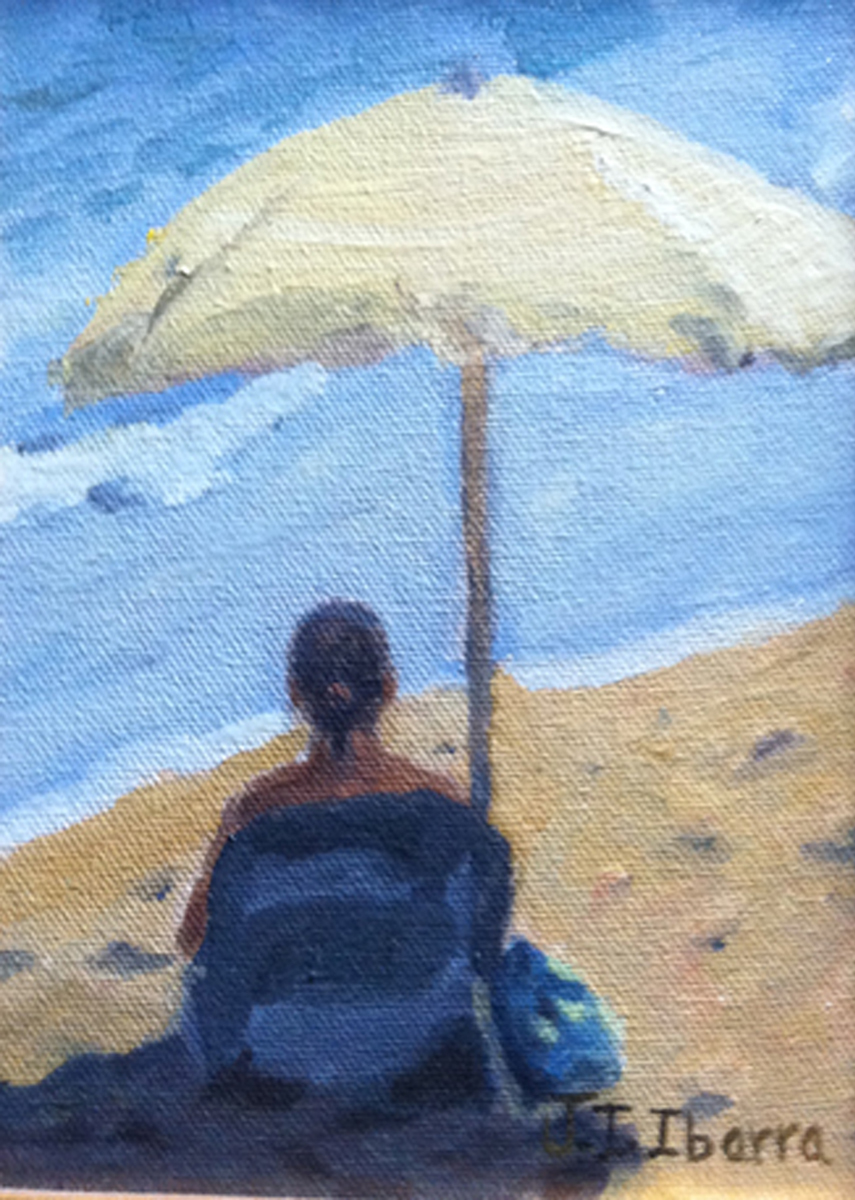 SHORT STORY #1 Chapter Heading Pic – This is an oil painting by Jose Ivan Ibarra (Woman with Umbrella) – seeing it made me want to write a story of how that woman arrived at sitting under that umbrella on that beach on that day – and that’s how Jolene’s story (the woman of the Woman With Yellow Umbrella – short story #1) got told.