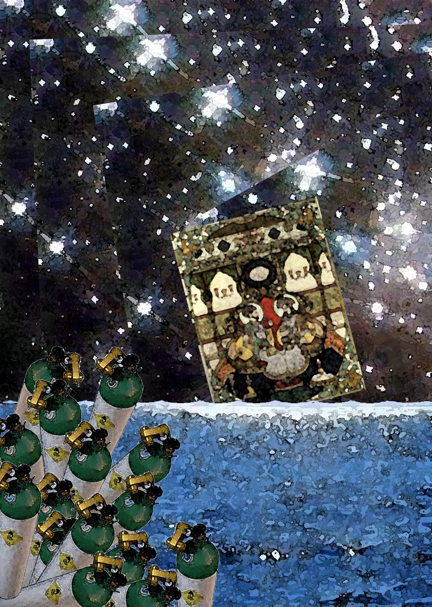 SHORT STORY #4 Chapter Heading Pic – From short story #4 Persian Miniature, A small Persian painting floating on a sea of light and used oxygen canisters.