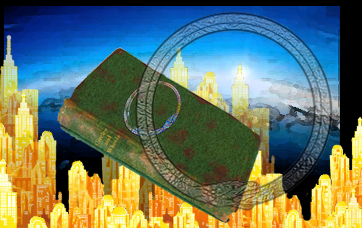 SHORT STORY #12 Chapter Heading Pic – The (eponymous) short story that is the story of this short story book that is the story of this short story book that is the story of this… well… you get the picture! A book that is all circles – vicious circles actually, a kind of viciously circular sort of moebius strip of a narrative – and yup, the symbol on the book’s cover in this chapter heading pic IS (you guessed it!) the ouroboros – that famous snake-biting-its-own-tail sign and symbol of INFINITY (and maybe of vicious, infinite circles?) – so, there you have it! – all this from the short story and last story (and best story) (or, at the very least the most CIRCULAR story) of this short story collection, in other words short story #12 – Circles and Wheels.