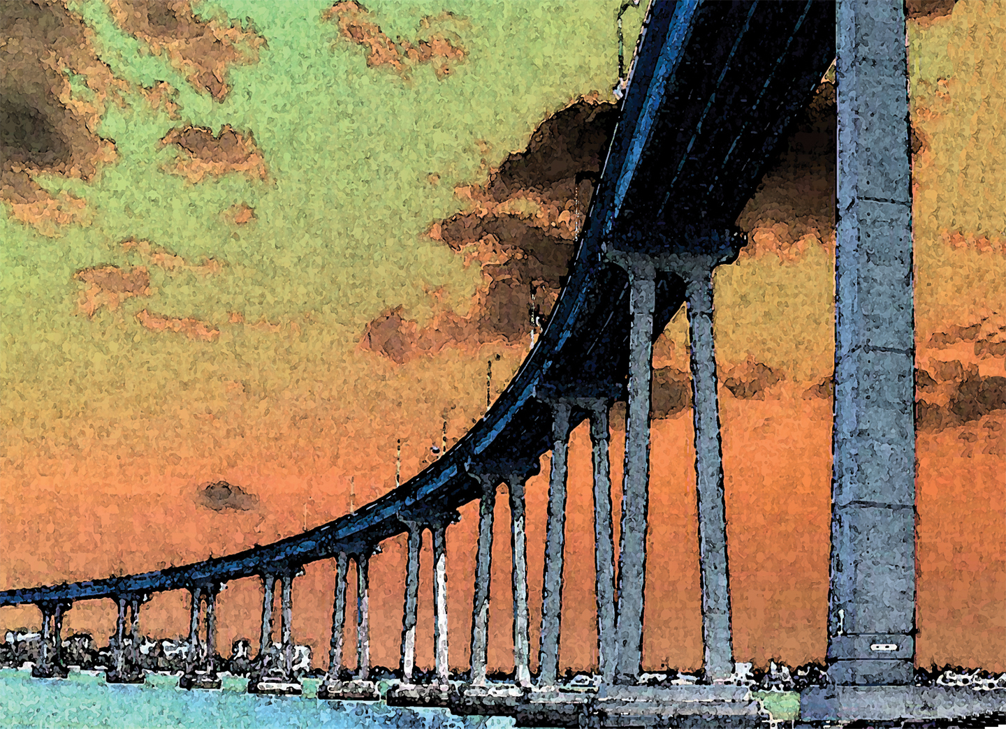 Again, the Coronado Bridge – San Diego – much edited – from story 5 – Night Streets